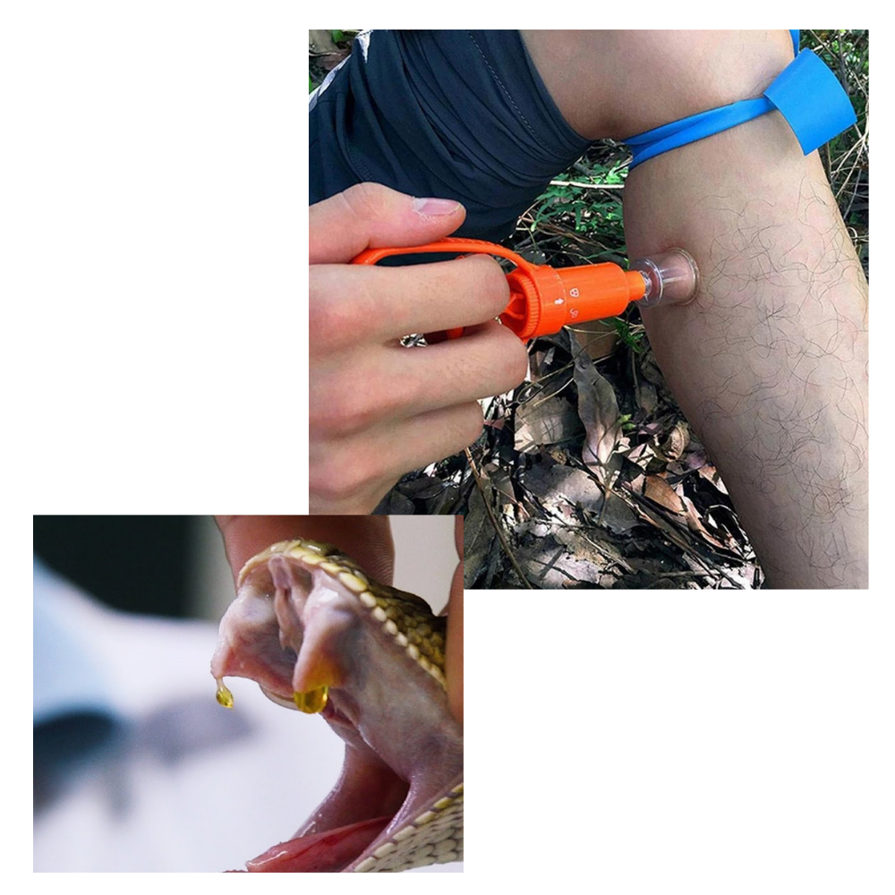 Now you may be thinking, “Okay, so basically, this tool will offer me excellent insect venom removal effects, right?” Absolutely, but you know what? It can even do much more. That’s right, in addition to using this emergency venom extractor tool to remove insect venom, you’ll also be able to use it to extract snake venom in case you get bitten. This makes it all the more useful because a lot of snake venom tends to have serious health effects, and early intervention often boosts treatment success. This kit also includes a handy tourniquet bandage just in case you need to use it. The suction plunger has two sizes of suction heads, so you can choose which one to use depending on the bite.