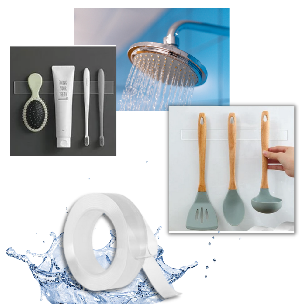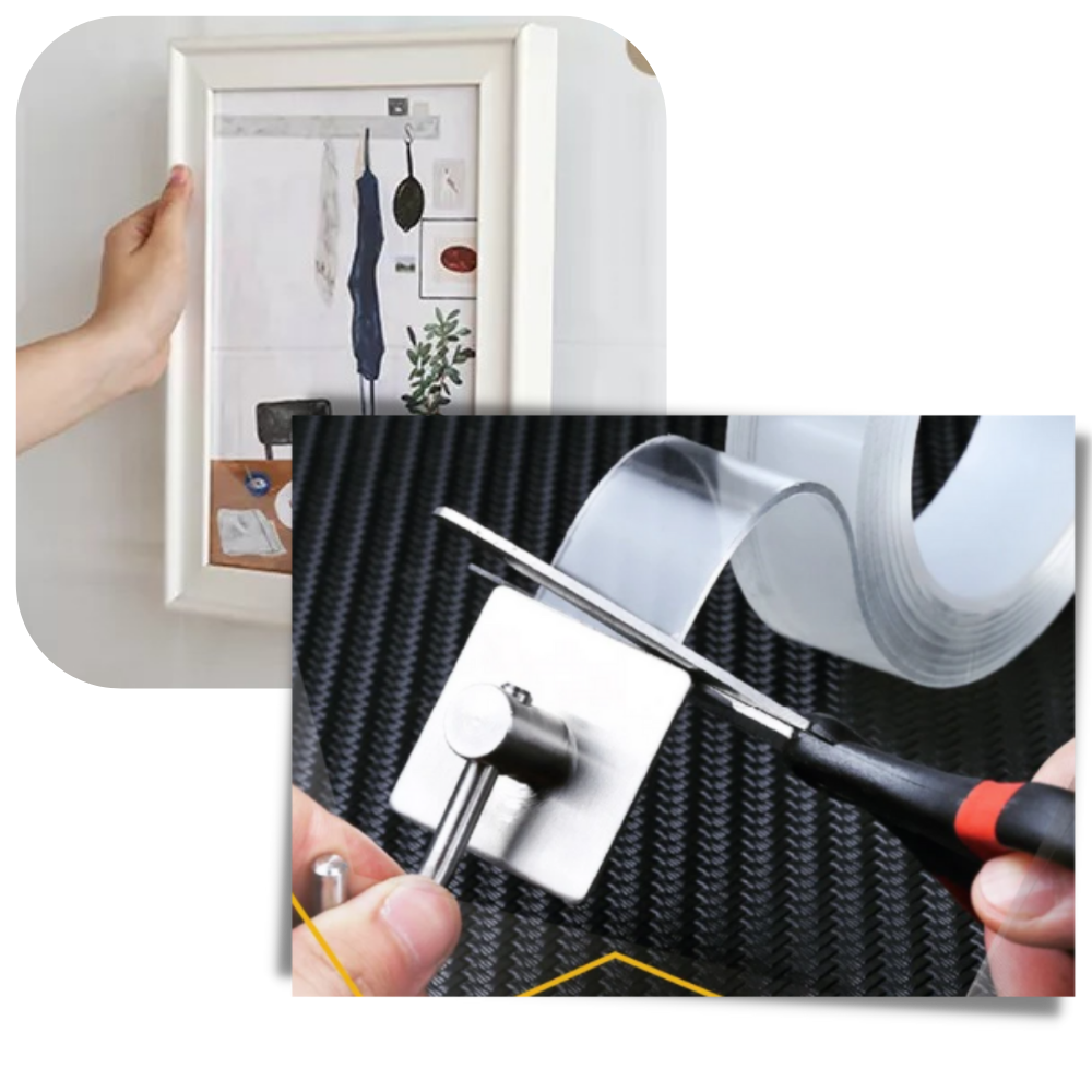 You can use the Magic Tape on glass, wood, plastic, concrete walls, and so on. It truly is a wonder-tape! Furthermore, you can adjust it to any size and shape you need. Hang it in your entrance for your keys and other things you need to remember. Use it in the kitchen for your kitchen tools. Even in your bedroom, office, or the children’s rooms. You can even out it on the floor, under your carpet so the carpet stays in place.